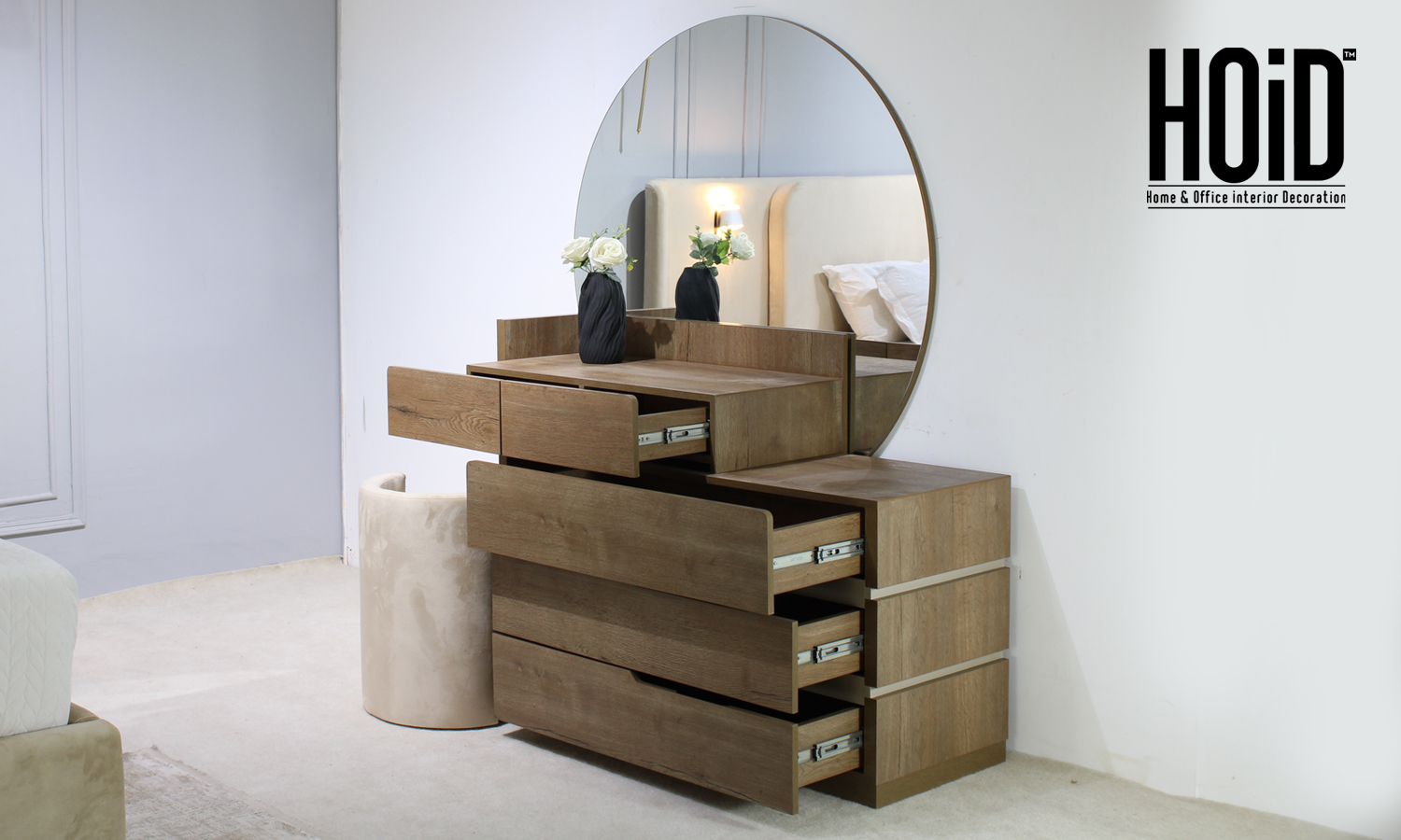Product Includes: 1 Dresser with 5 Drawers + 1 Mirror + 1 Stool