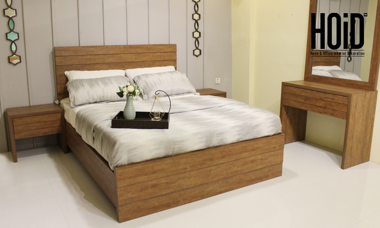 Product Includes: 1 Bed Frame + 2 Side Tables + Dresser + Mirror + 2 Door Wardrobe