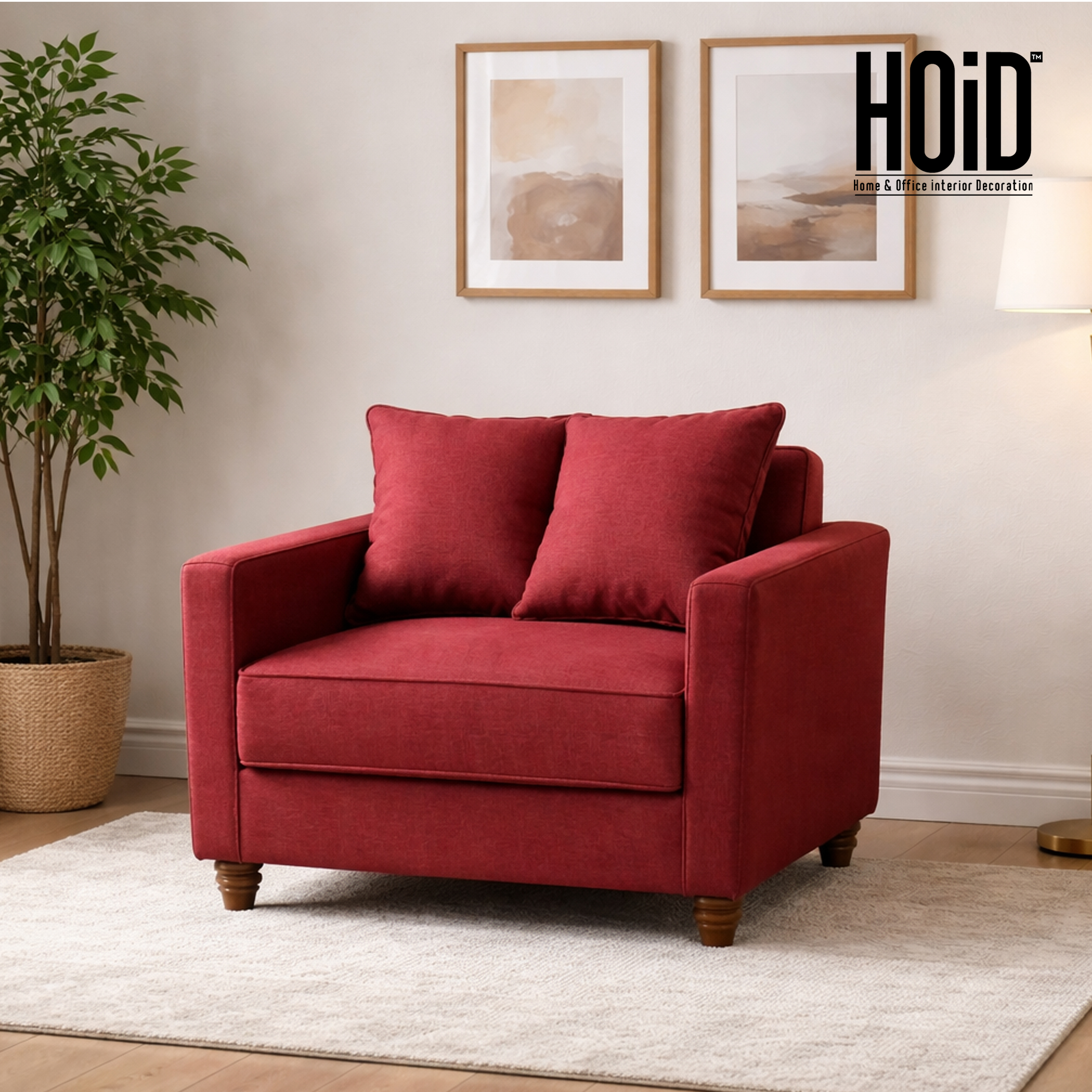 Extremely comfortable sofa for your Lounge or Living room. Structure of the Sofa is made from wood. Seating Foam is by Master Molty Foam and all 4 legs are of wood. Fabric used in this sofa is Jute fabric. The sofa come with 2 big cushions and 1 small cushions. Perfect for watching TV or for a quick nap 🙂