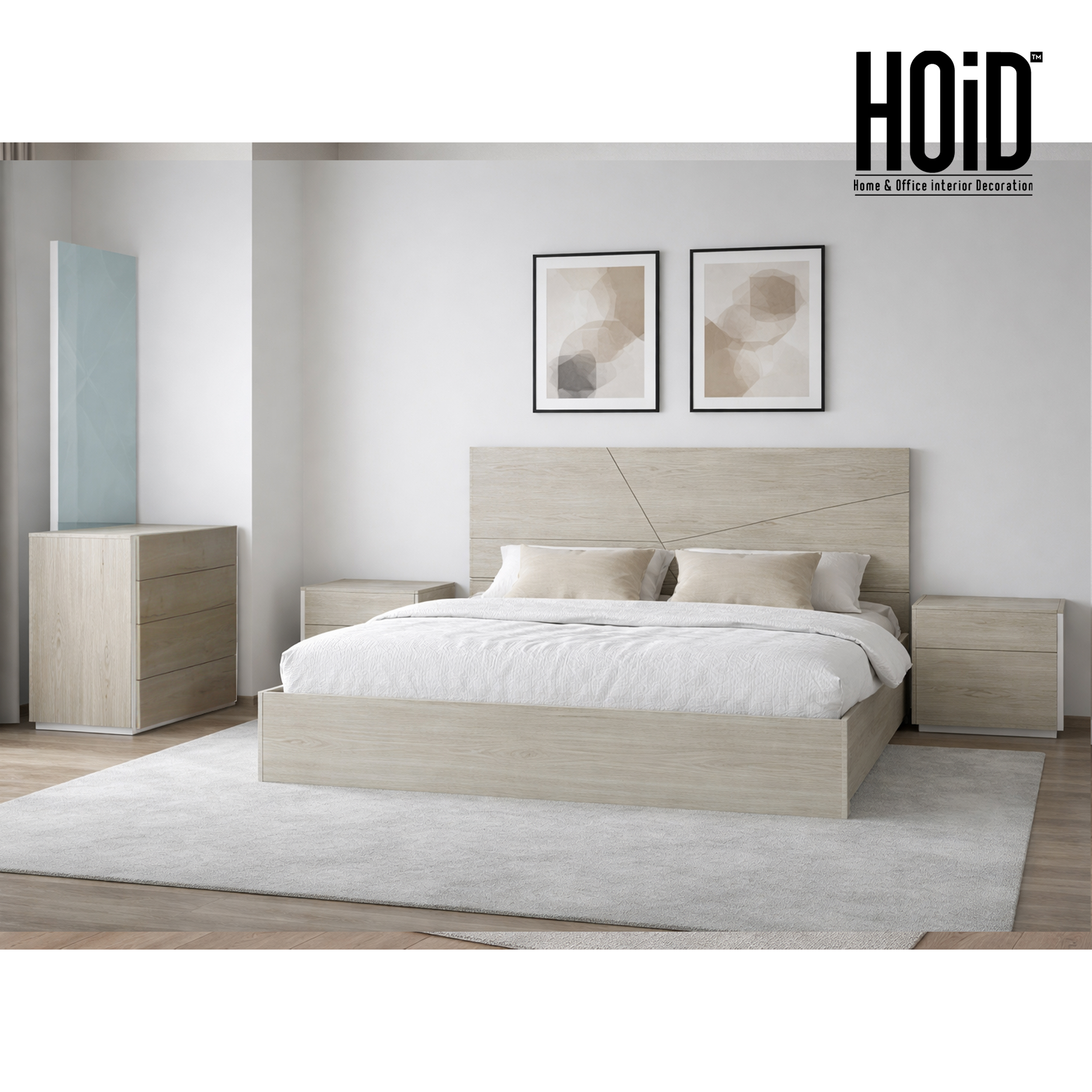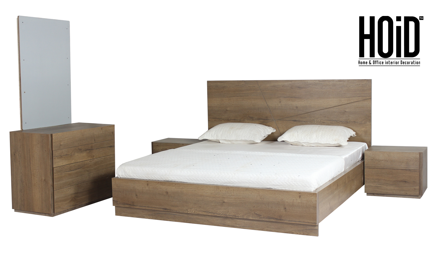 Product Includes: 1 Bed Frame + Board for Mattress + 2 Side Tables + Dresser + Mirror