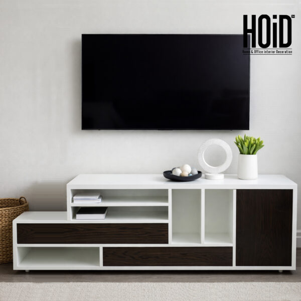 4 Wheels of 2 inches 3 doors in Oak material Material: Malaysian Lasani, doors of Oak MDF Colors available: Combination of White Brown | Combination of White Black | Complete Black | Complete Walnut brown *Image is of combination of white brown Dimensions: Height: 22″ | Length: 66″ | Depth: 16″ Outer thickness: 1″ | Inside thickness: 0.8″