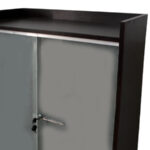 4 Tier; including the top shelf Glass Lock Sliding Glass doors Material: Lamination MDF Colors Available: Sheesham |?Walnut Brown | Black Dimensions: Height: 4 ft | Length: 30″?Depth: 14″ Inside shelf Height: 11″ Border of 2″ on the top? 4 Wheels with stopper on the front two wheels Voucher valid for: 1 Shelf