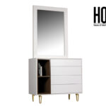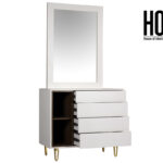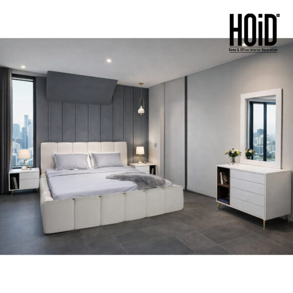 Product Includes: 1 Bed Frame with Board for Mattress + 2 Side tables + 1 Dresser + 1 Mirror