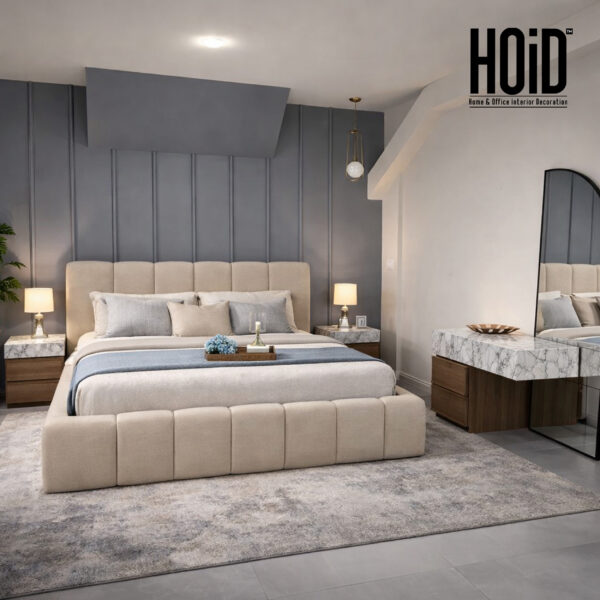Product Includes: 1 Bed Frame with Board for Mattress + 2 Side tables + 1 Dresser + 1 Mirror