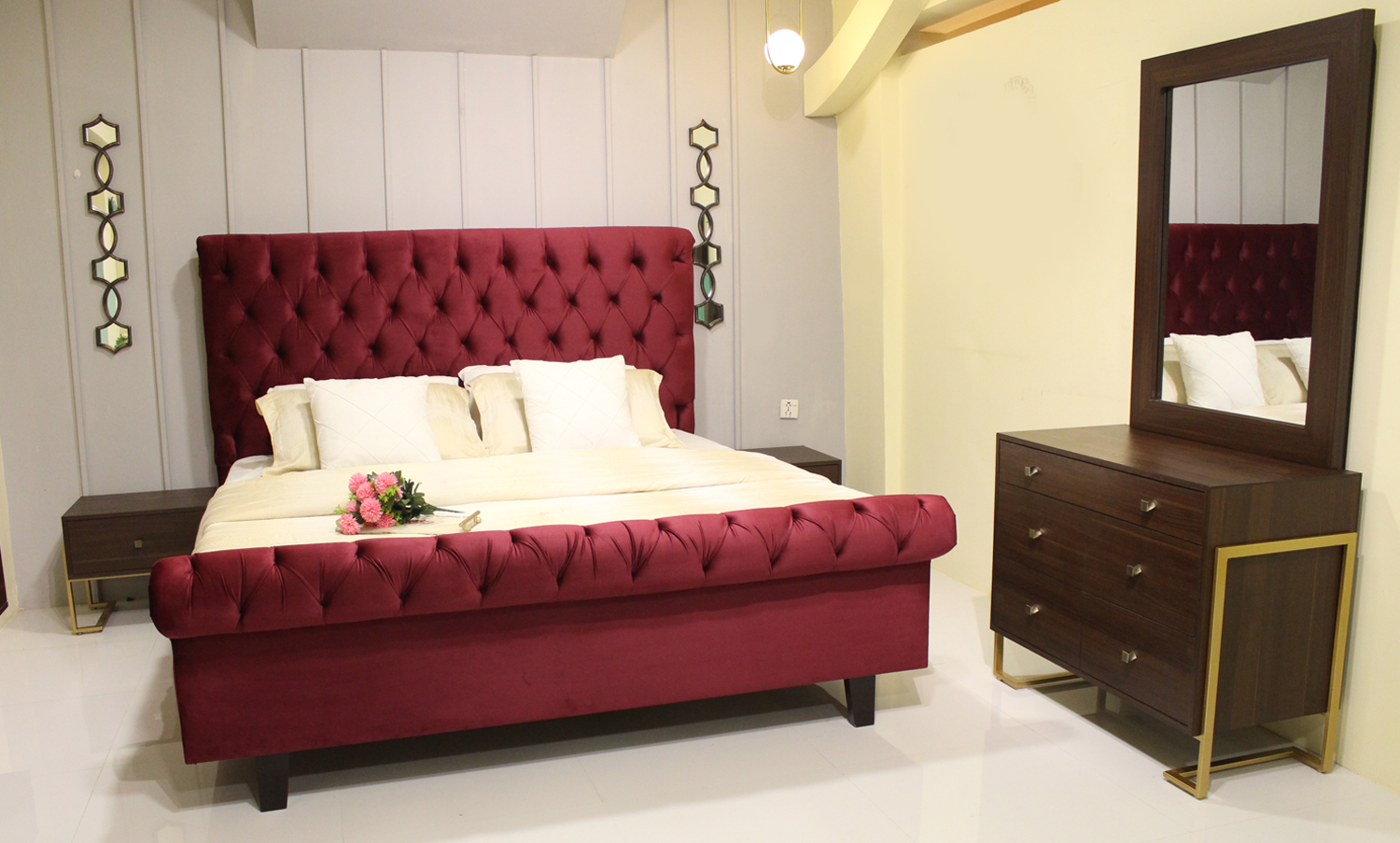 Product Includes: 1 Bed Frame with Board for Mattress + 2 Side Tables + 1 Dresser + 1 Mirror