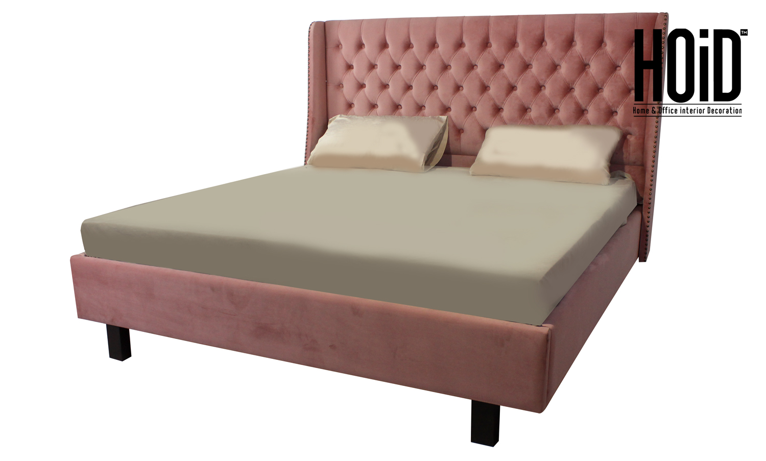 Material: Oak Board with Suede Fabric Tufting, Pure Wooden Legs