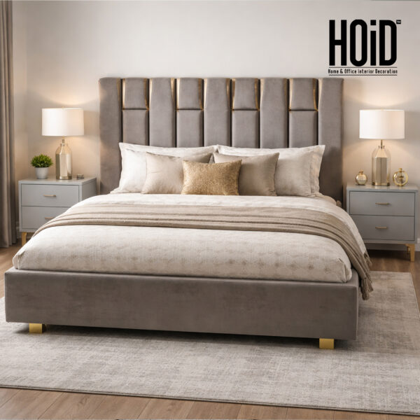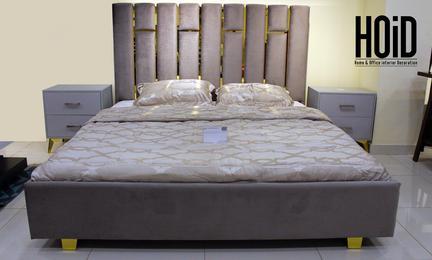 Supreme King Size Bed in Suede Fabric with 2 Side Tables