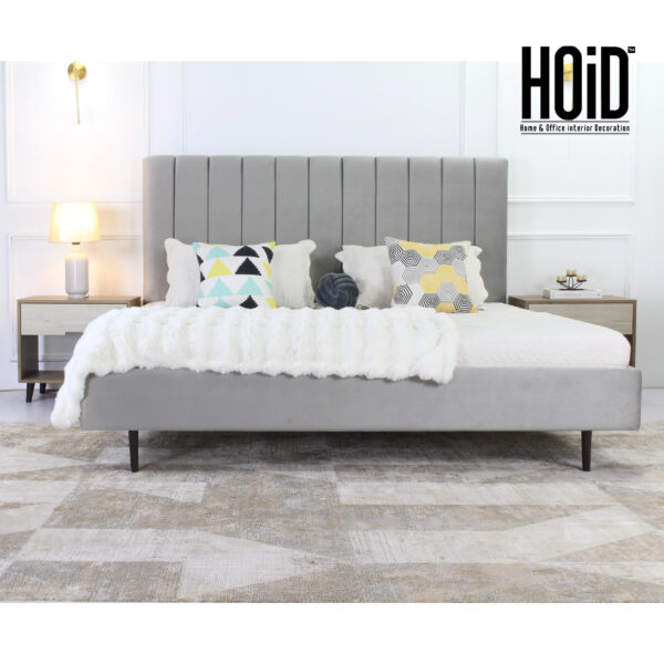Zell Fabric Bed in Suede Fabric with 2 Turn Side Tables