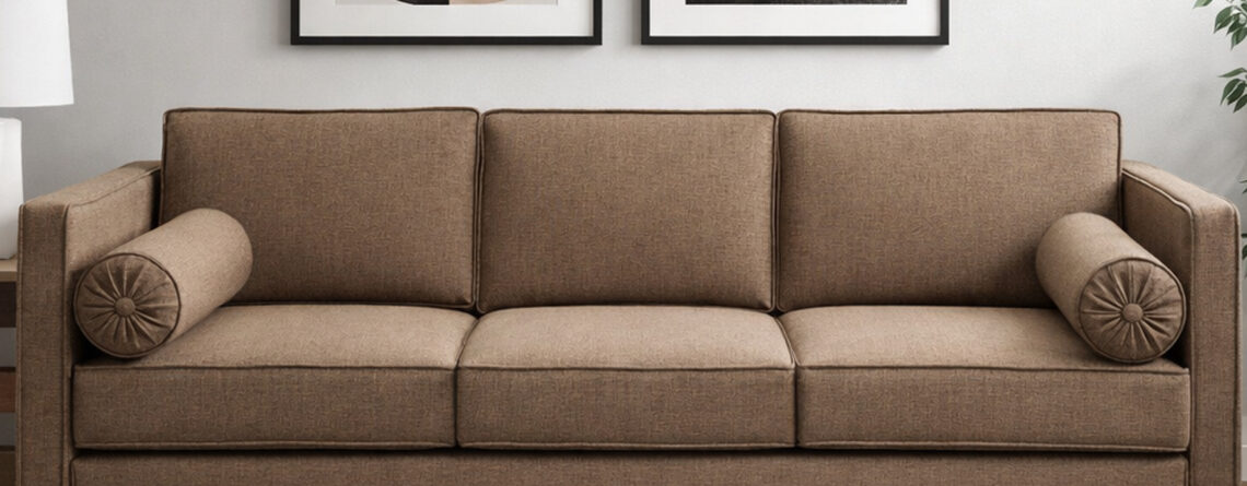 Material: Solid Wooden Structure with Jute Fabric Colors: Grey | Walnut Brown | Black Height: 36" | Total back length: 4.5 ft | Depth: 30" Dimensions: Per Seat Length: 22" by 22"