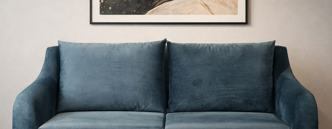 Material: Pure Wood Structure, Suede Fabric with Molty Foam Seats Colors Available: Grey | Black | Red | Green | Dark Brown Dimensions: Back Height: 33" | Total Length: 78" | Depth: 30" | Legs: 9"