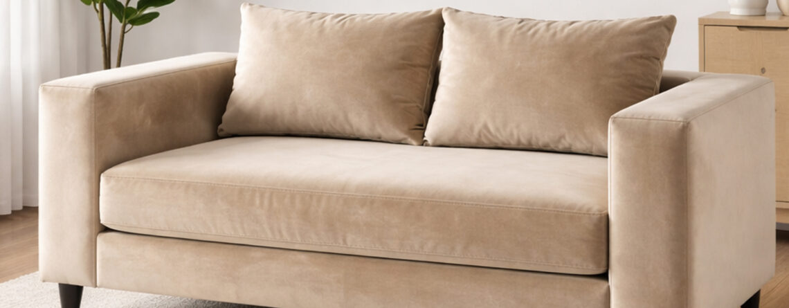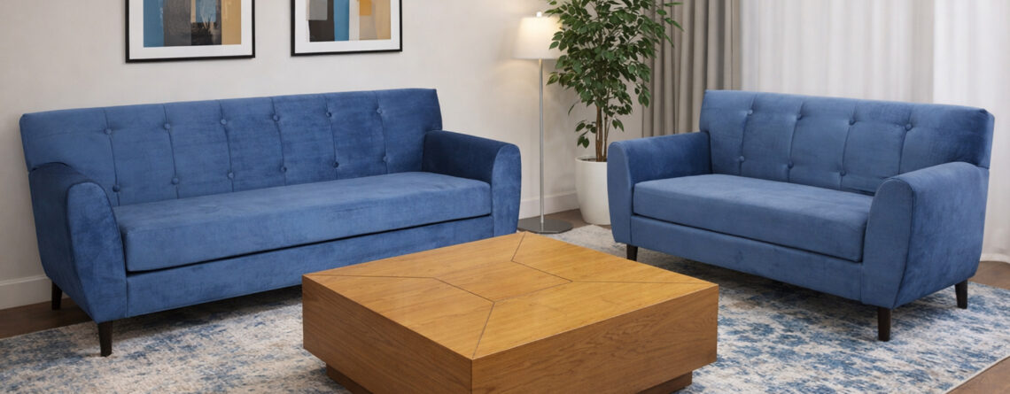 Material: Solid Wood Structure with Suede Fabric & Pure Wooden Polished Legs Colors: Dark Brown | Red | Blue | Yellow | Black | Grey Dimensions: Back Height: 3 ft | Front Seat Height: 18" | Total Length: 86.5" | Depth: 29.5" | Arm Rest Height: 25" | Legs Height: 6"