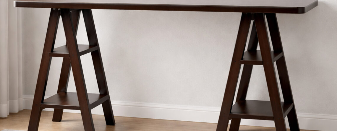 Material: Melamine Top with Pure Wooden Legs Support Colors Available: Dark Sheesham Melamine | Synchro Walnut Brown Melamine | Dark Bronze Melamine Dimensions: Height: 32" | Length: 5 ft | Depth: 20"