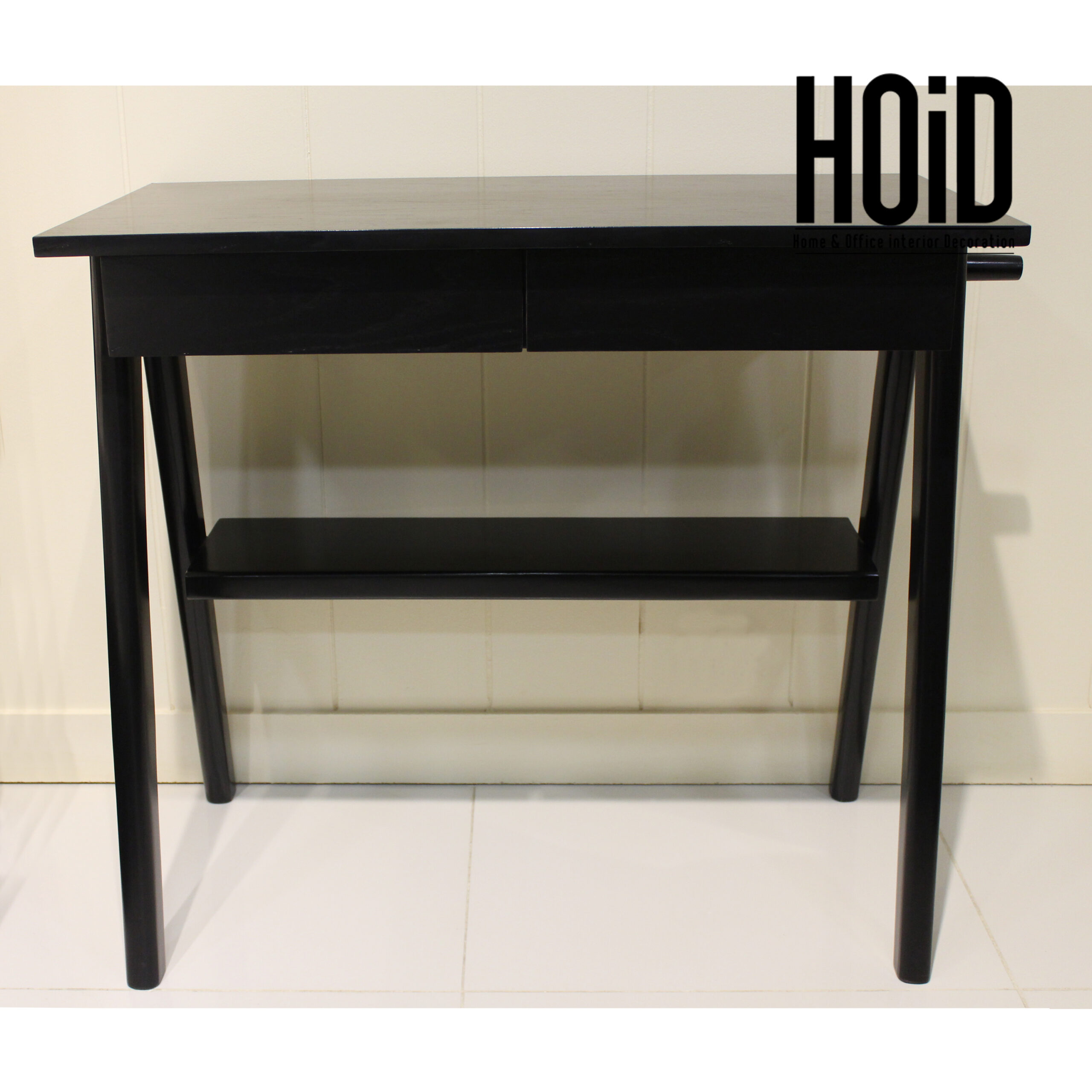 Material: Pure Wooden Legs with Oak Board Table top and Drawers Colors Available: Black | Walnut Brown | Dark Sheesham Dimensions: Height: 32" | Length: 3 ft | Depth: 18"