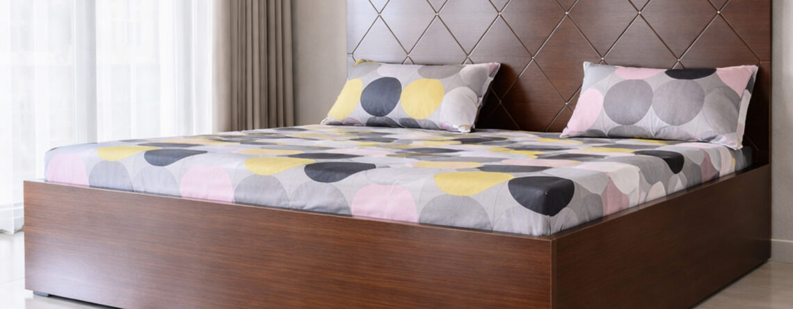 Bed Material: Mdf with Jute Fabric Colors Available: Brown | Grey | Textured Grey | Red | Blue Dimensions: King Size: 6 ft by 6.5 ft | Queen Size: 5 ft by 6.5 ft Back Board Height: 52″ | Footboard Height: 18″ Side Table Dimensions: Height: 20″ | Length: 18″ | Depth: 16″