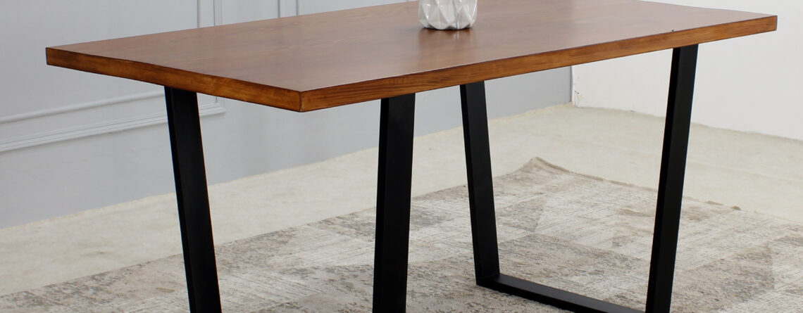 Material: Oak Board with Solid Wood Legs Frame Colors Available: Brown | Dark Sheesham | Walnut Brown | Black Dimensions: Height: 26" | Length: 4 ft | Depth: 16.5"