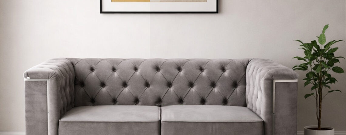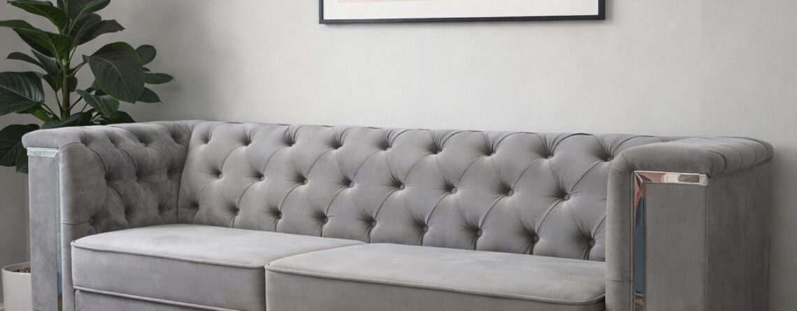 Material: Solid Wood Sofa with Solid Wood Polished Legs Fabric: Suede Colors: Grey | Green | Red | Blue | Black | Brown Dimensions: Back Height: 27" | Length: 6.3 ft | Depth: 33" | Seat Height: 16" Legs Height: 4"