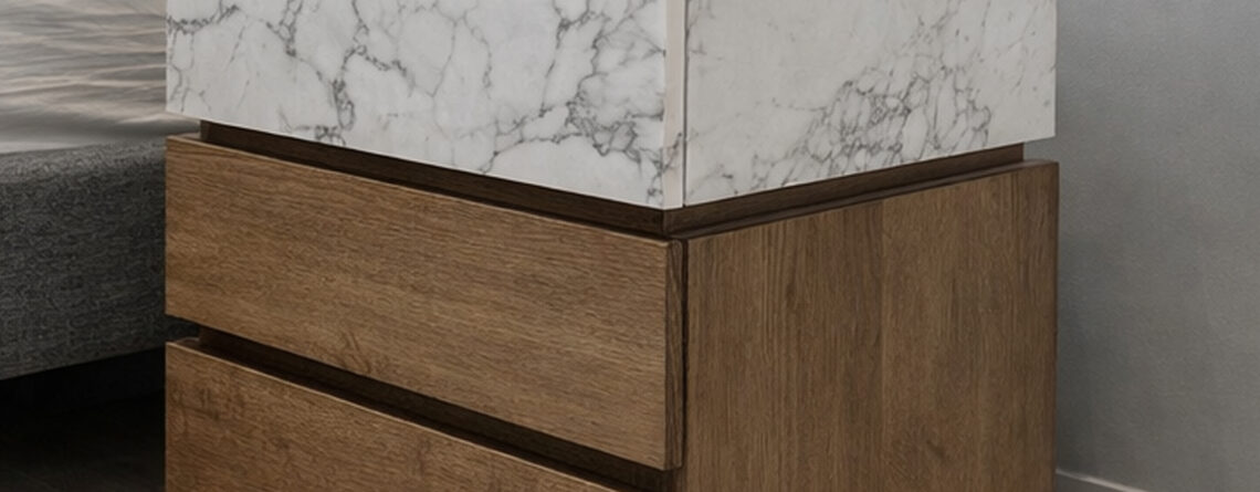 Material:Melamine Colors Available:Off White Marble with Synchro Walnut Brown Melamine | Off White Marble with Pegodas Brown Melamine Dimensions: King size: 6 ft by 6.5 ft | Queen Size: 5 ft by 6.5 ft Bed Back Board Height: 44.5 Inches | Foot Board Height: 14 Inches | Legs Height: 7 Inches Side Table: Height: 22" | Length: 18" | Width: 16" Dresser: Height: 30" | Length: 36" | Width: 18" Mirror: Height: 6 feet | Length: 31"