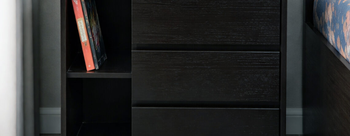 Material: Melamine Colors Available: Synchro Walnut Brown Melamine | Dark Bronze Melamine | Black Textured Melamine Dimensions in Inches: 1 Shelf: Height: 7" | Length: 10.5" 2 Shelf: Height: 9" | Length: 18" Depth: 6"