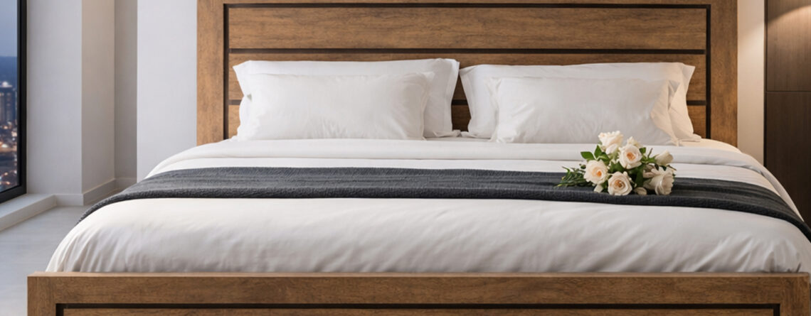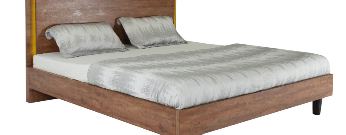 Material: Melamine with Pure Wooden Legs Colors Available: Synchro Walnut Brown Melamine | Dark Bronze Melamine | Pegodas Brown Melamine Dimensions: King Size: 6 ft by 6.5 f | Queen Size: 5 ft by 6.5 ft Back Board Height: 46" | Footboard Height: 14" | Back Board Depth: 3"