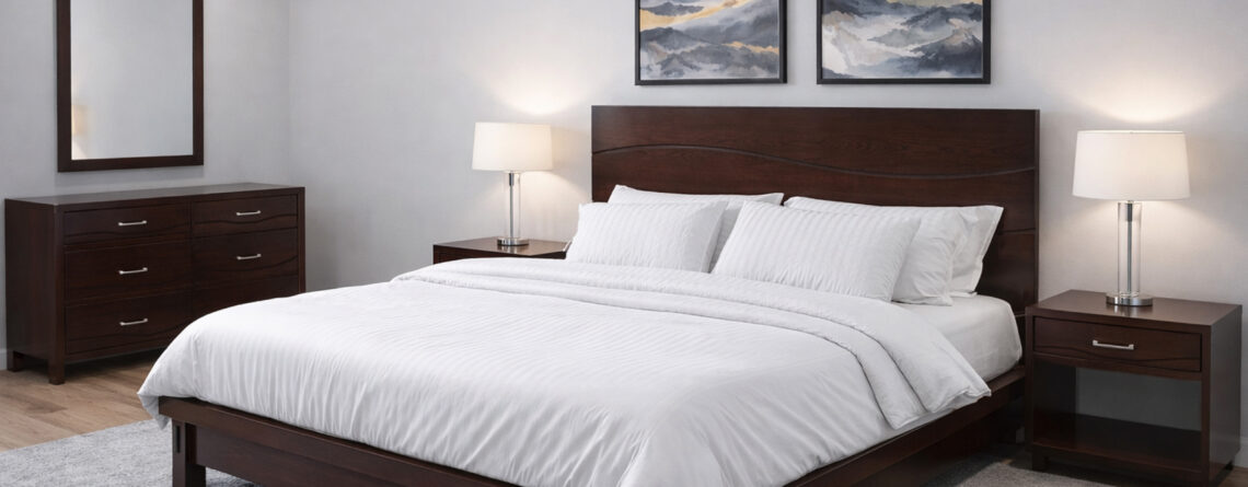 Material: Lamination Melamine Colors: Pegodas Brown Lamination with Dark Grey | Synchro Walnut Brown with Dark Grey Dimensions: Back Height: 46" | Foot board Height: 15" Side Table: Height: 18" | Length: 22" | Depth: 16" Dresser: Height: 36" | Length: 3.5 ft | Depth: 18" Wardrobe: Height: 6.5 ft | Length: 66" | Depth: 23"