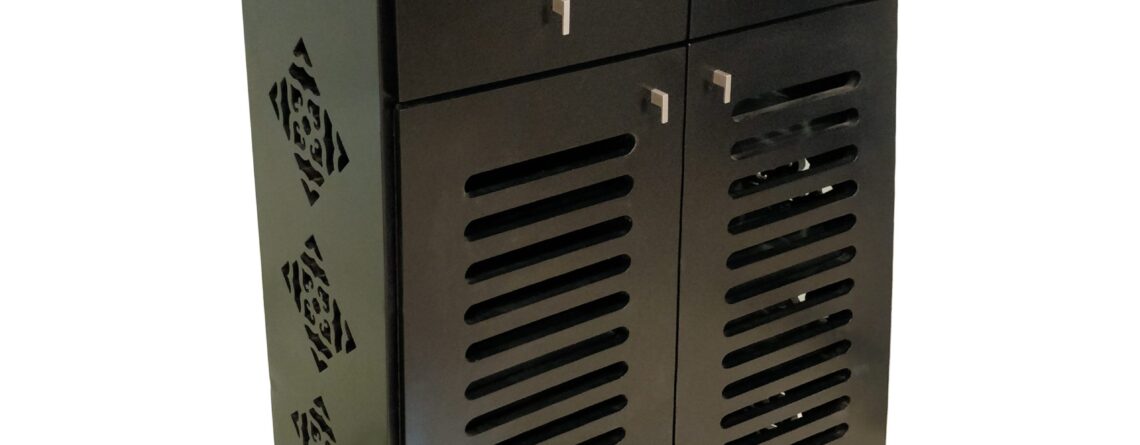 Material: Lasani Colors: Walnut Brown | Black Dimensions: Height: 4 ft | Length: 32" | Depth: 14"