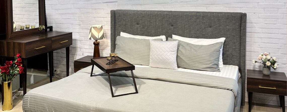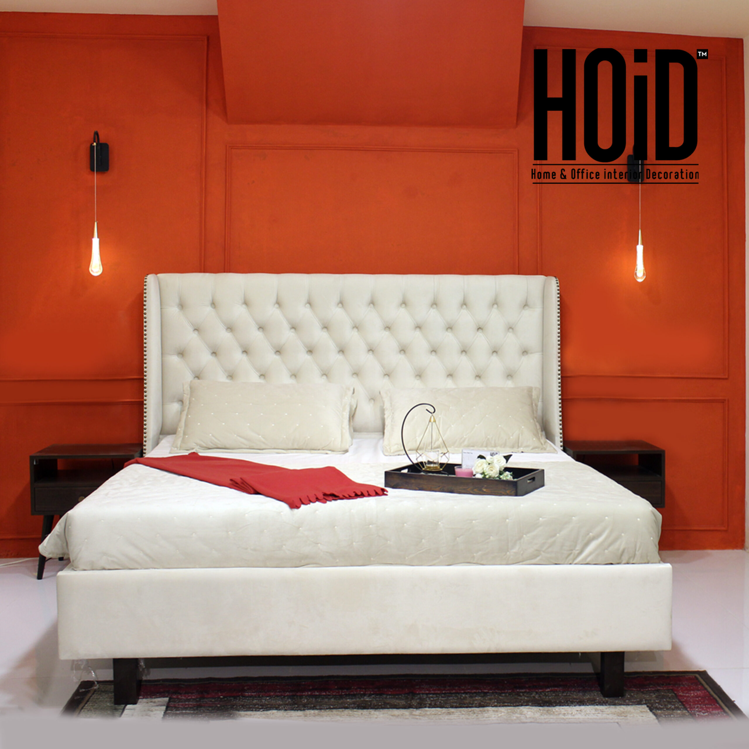 Material: Oak Board with Suede Fabric Tufting, Pure Wooden Legs Colors Available: White | Red | Blue | Grey | Green | Beige | Black Dimensions: King Size: 6 ft x 6.5 ft | Queen Size: 5 ft by 6.5 ft Back Board Height: 55″ | Foot Board Height: 16.5″ Side Table Height: 21.5″ | Length: 18″ | Depth: 16″ | Legs Height: 12″ Dresser: Height: 32" | Length: 4.5 ft | Depth: 18" Mirror: Diameter: 3 ft Wardrobe: Height: 6.5 ft | Length: 3 ft |...