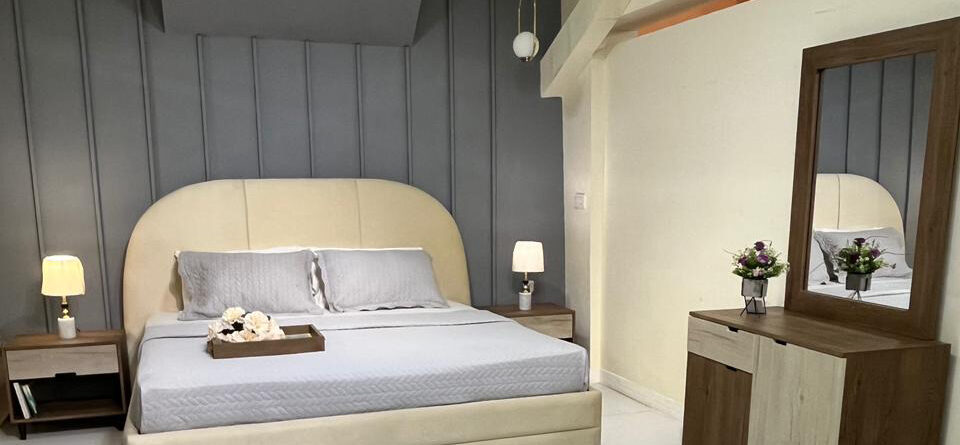Snow Bed with Jeru Side Tables, Dresser with Mirror & 2 Door Wardrobe