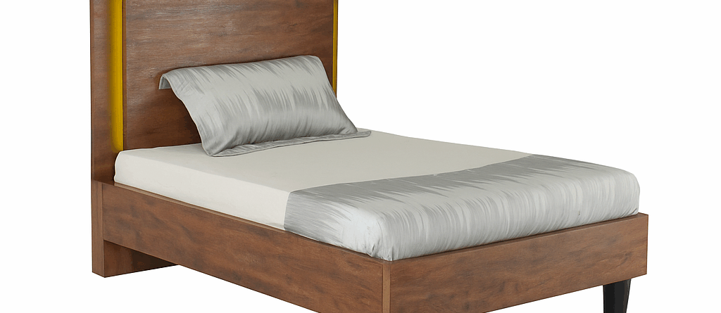 Material: Melamine with Pure Wooden Legs Colors Available: Synchro Walnut Brown Melamine | Dark Bronze Melamine | Pegodas Brown Melamine Dimensions: Single Size: 3 ft by 6 ft | Single Size: 3.5 ft by 6.5 ft Back Board Height: 46" | Footboard Height: 14" | Back Board Depth: 3"