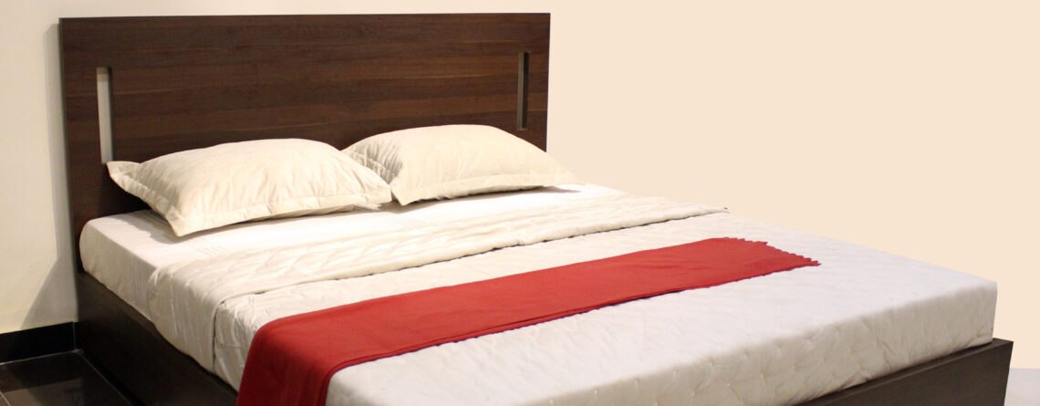 Material: Melamine Colors Available: Walnut Tex | Synchro Walnut Brown Melamine Dimensions: King size bed [6 x 6.5 ft] | Queen Size: 5 ft by 6.5 ft Back Height: 42" Foot Height: 10.5"